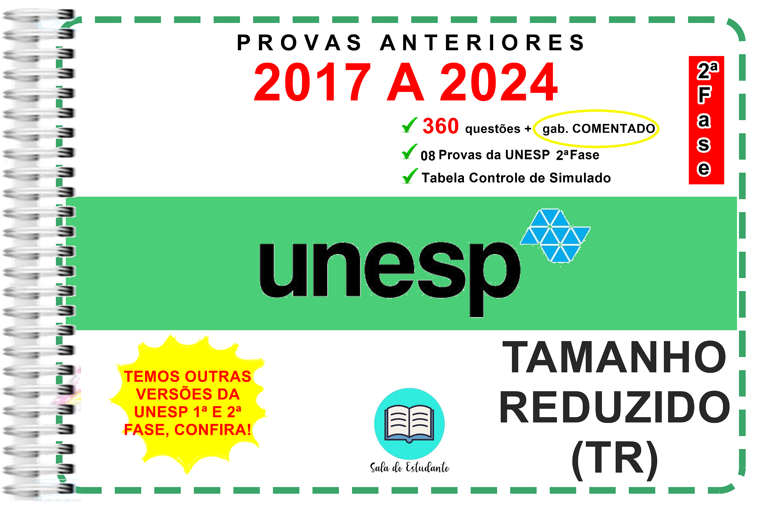 Esse anúncio refere-se a UMA apostila VERSÃO TR contendo as provas anteriores do vestibular UNESP 2ª FASE das edições 2017 a 2024 + gabarito COMENTADO ao final de cada edição. Trata-se um material FÍSICO (não é arquivo digital). Segue especificações: