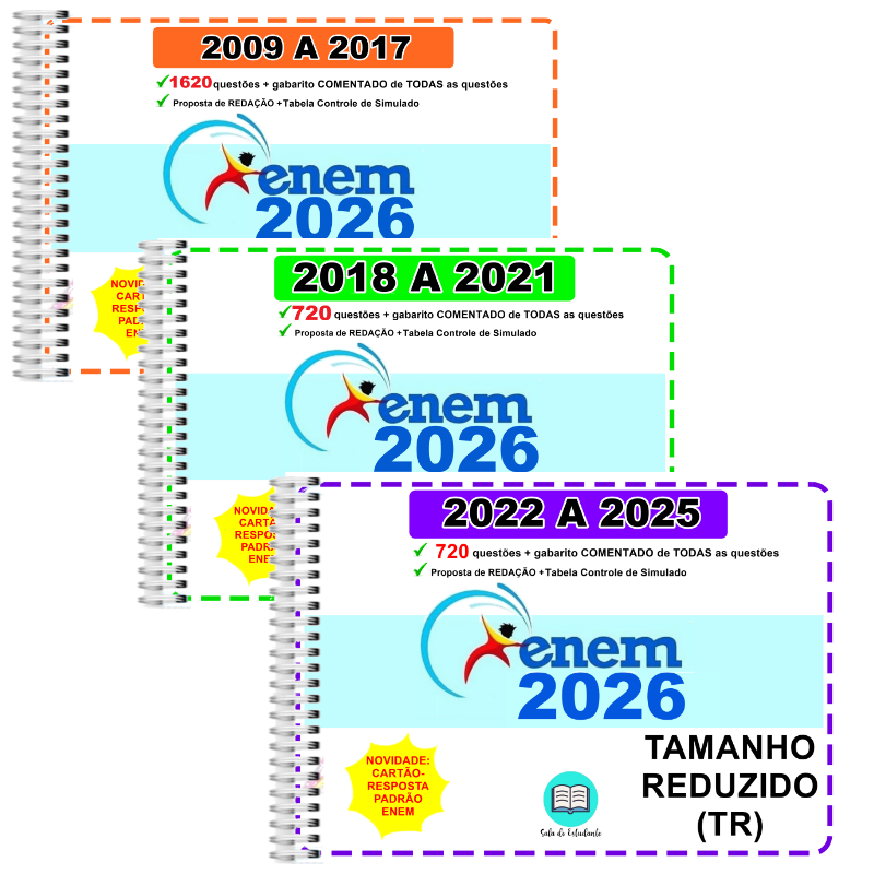 3. ENEM 2009 A 2025 (3 APOSTILAS TR): 17 provas (2009, 2010, 2011, 2012, 2013, 2014, 2015, 2016, 2017, 2018, 2019, 2020, 2021, 2022, 2023, 2024 e 2025), 3060 questóes com gabarito COMENTADO de todas as questóes, 10 redacoes exemplo nota 1000, 1998 páginas