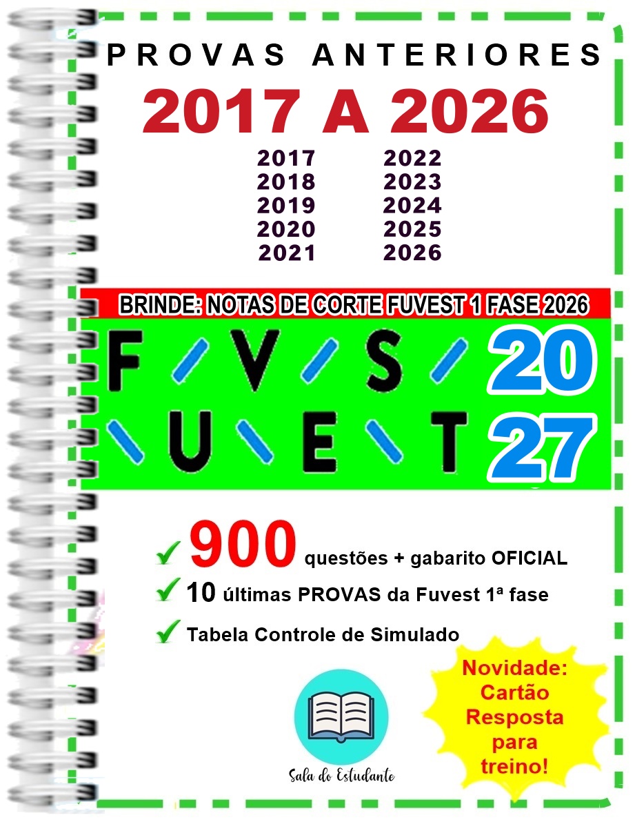 Esse anúncio refere-se a UMA apostila contendo as provas anteriores do vestibular FUVEST 1ª FASE das edições 2017, 2018, 2019, 2020, 2021, 2022, 2023, 2024, 2025 e 2026 + gabarito OFICIAL ao final de cada edição. Trata-se um material FÍSICO (não é arquivo digital). Segue especificações: