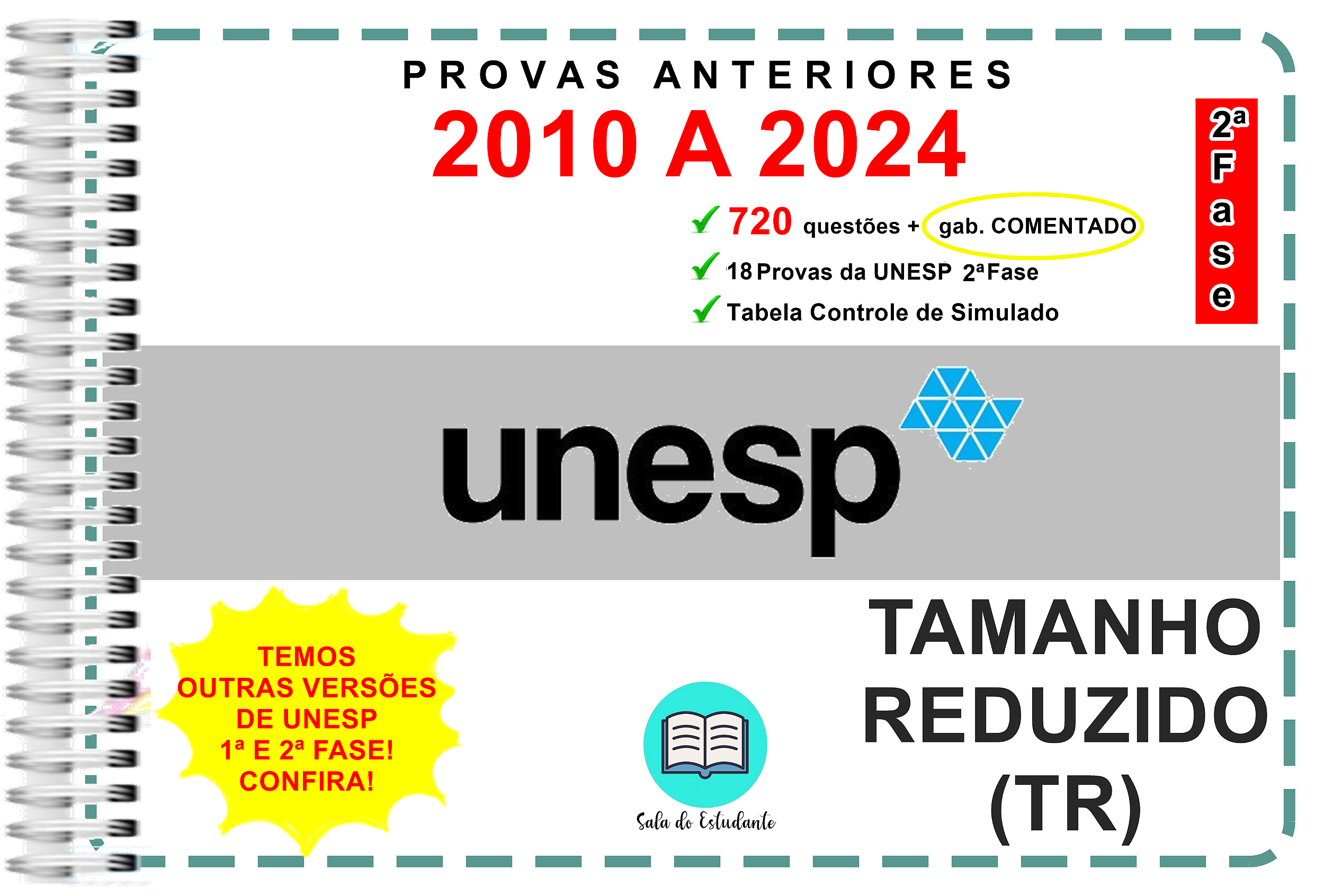 Esse anúncio refere-se a UMA apostila VERSÃO TR contendo as provas anteriores do vestibular UNESP 2ª FASE das edições 2010 a 2024 + gabarito COMENTADO ao final de cada edição. Trata-se um material FÍSICO (não é arquivo digital). Segue especificações:
